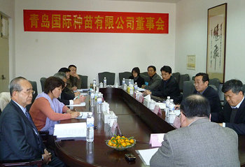 2013年3月14日下午十五時,青島國際種苗有限公司召開了第二十九次董事會,會議由青島市農科院院長兼公司董事長萬述偉先生主持,公司副董事長日方董事時田勉先生,青島市農科院副院長中方董事張守才先生、公司總經理中方董事張繼余先生、公司副總經理日方董事岸和治先生參加了會議。公司監事張紹鳳小姐、公司總經理助理兼總務部長盧智民先生、國際部部長胡軍榮先生、國內部部長何大鵬先生列席了會議。會議認真總結了2012年度的工作情況,正確制訂了2013年的工作計劃,下達了2013年的工作任務,會議就七個議題,形成了董事會決議。