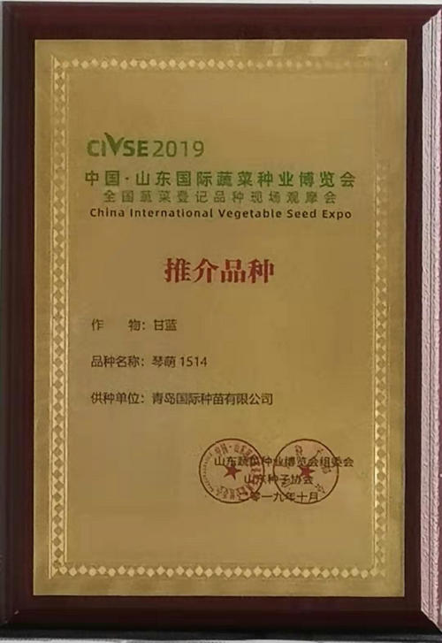 10月30至31日,我公司參加了全國農技推廣服務中心、山東省農業廳、濟南市農業農村局主辦的“山東國際蔬菜種業博覽會暨全國蔬菜登記品種現場觀摩會”,會上,青島國際種苗有限公司被山東省種子協會、山東蔬菜種業博覽會組委會授予“十佳品牌企業獎”,我公司參展的琴萌1794大白菜新品種、琴萌123和琴萌1514甘藍新品種被大會組委會評為專家“推介品種”。